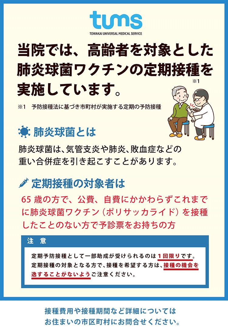 高齢者対象 肺炎球菌ワクチン接種のご案内