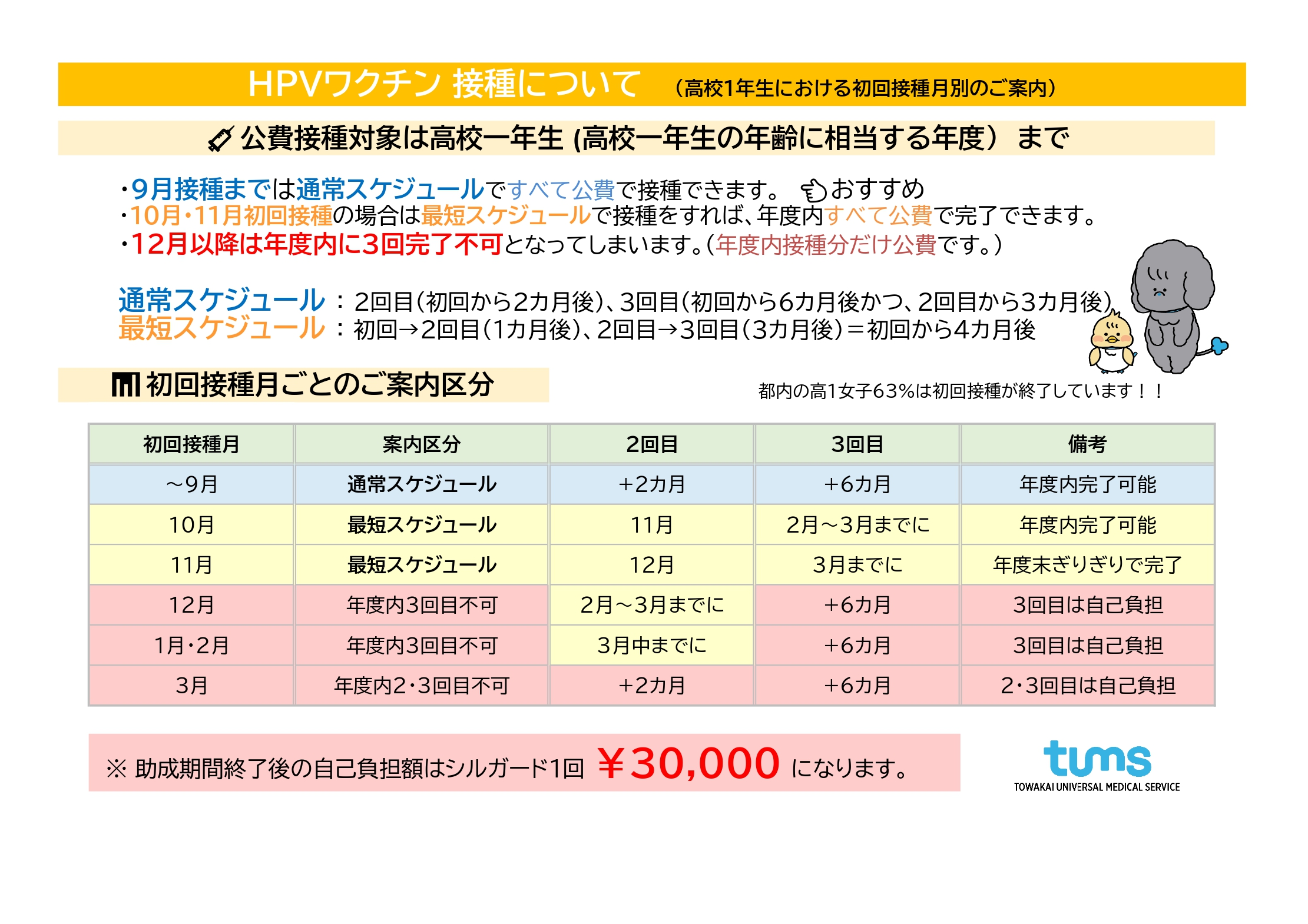 接種は複数回に分けて行うため、開始時期によっては年度内にすべての接種が完了できない場合があります。